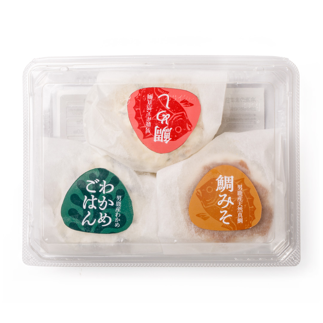 わかめごはんおにぎり(90g)・鯛めしおにぎり(90g)・鯛みそおにぎり(100g) 各1個