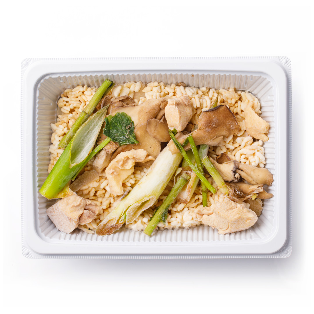 業販・仕入のご相談はこちら| 原材料 | うるち米(秋田県産)、野菜(たまねぎ、ながねぎ、ごぼう、せり)、比内地鶏スープ、まいたけ、オリーブオイル、和風だしの素、(一部に小麦・大豆・鶏肉を含む) |