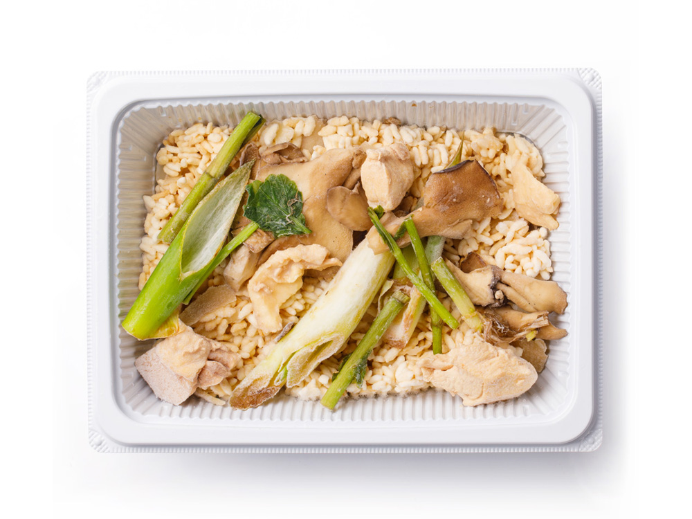 - うるち米(秋田県産)、野菜(たまねぎ、ながねぎ、ごぼう、せり)、比内地鶏スープ、まいたけ、オリーブオイル、和風だしの素、(一部に小麦・大豆・鶏肉を含む)